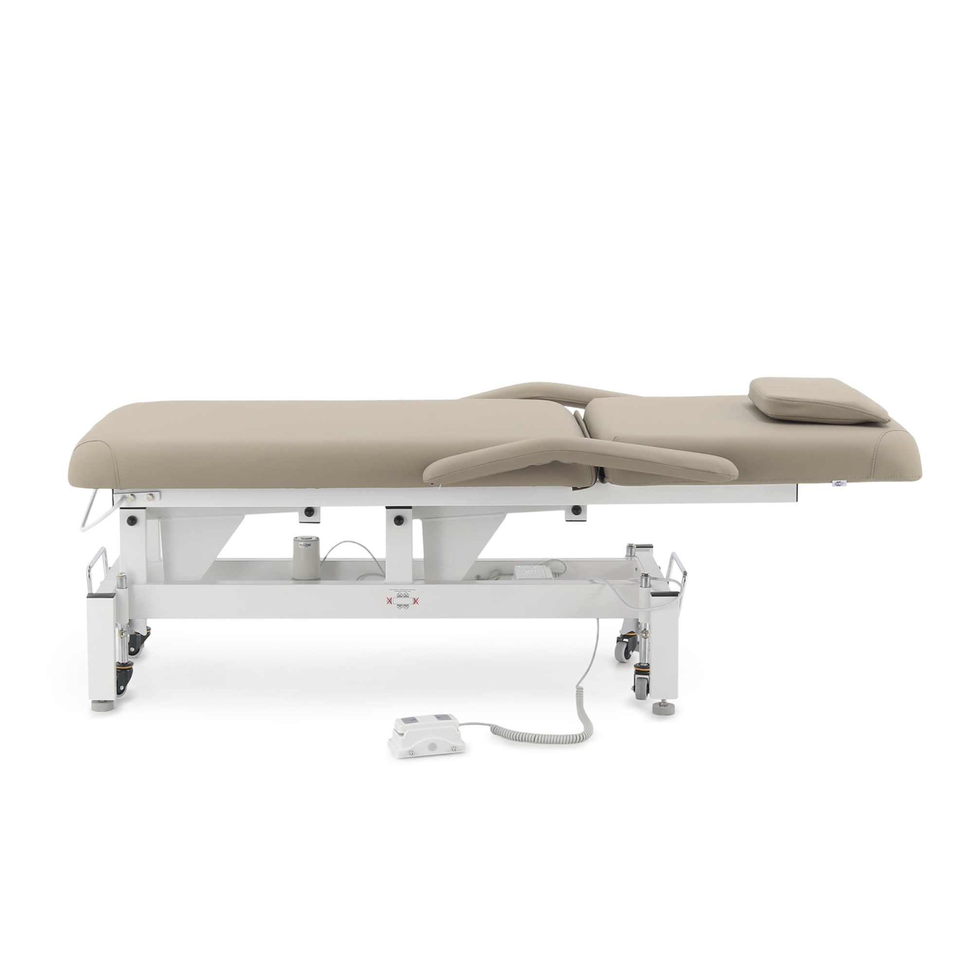 - Комфорт для клиента: Широкое ложе с толстым упругим наполнителем, отверстие для лица с мягкими подушками и регулируемые подлокотники создают условия для полного расслабления.