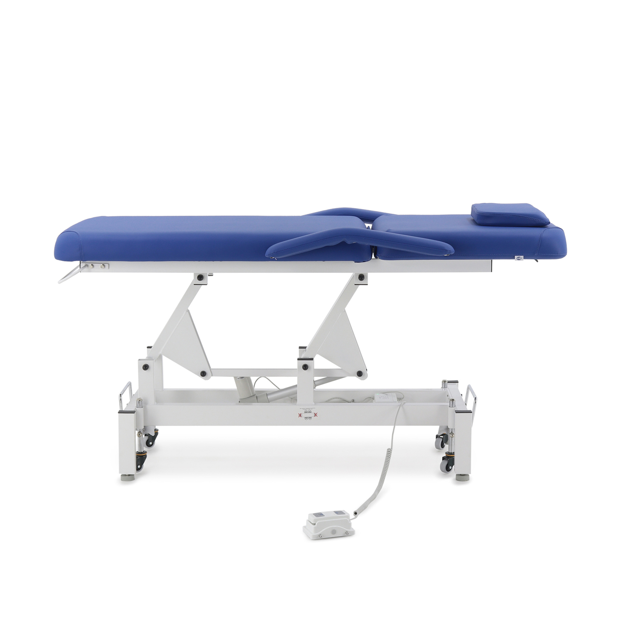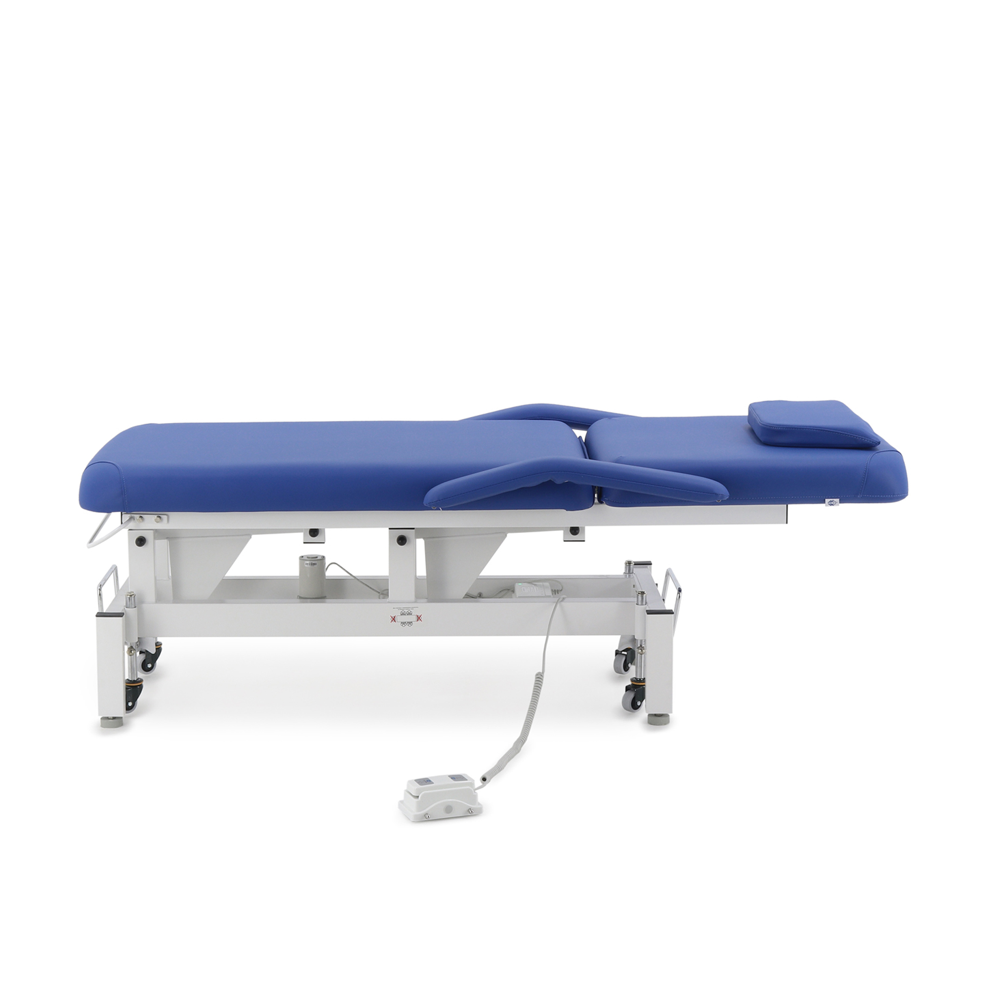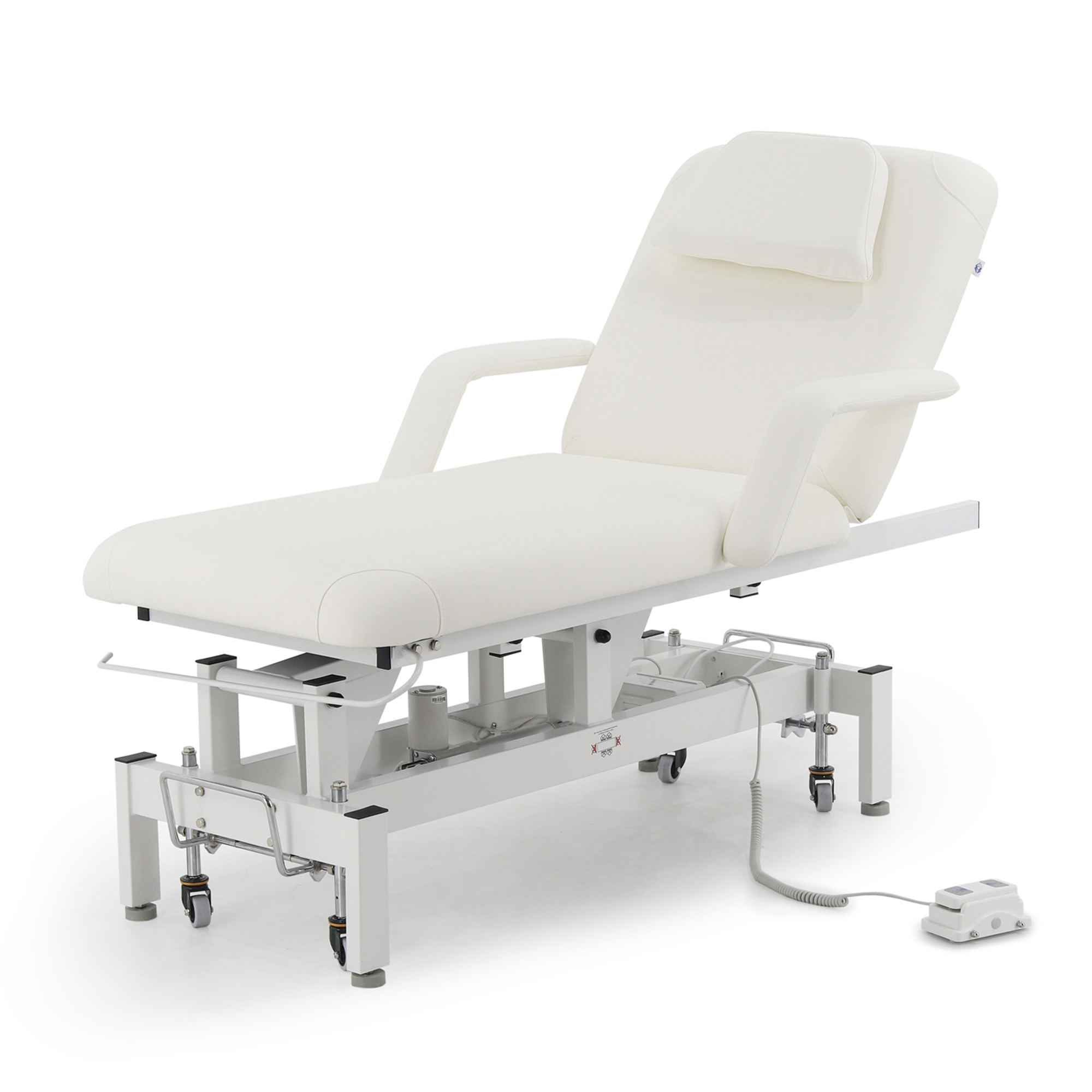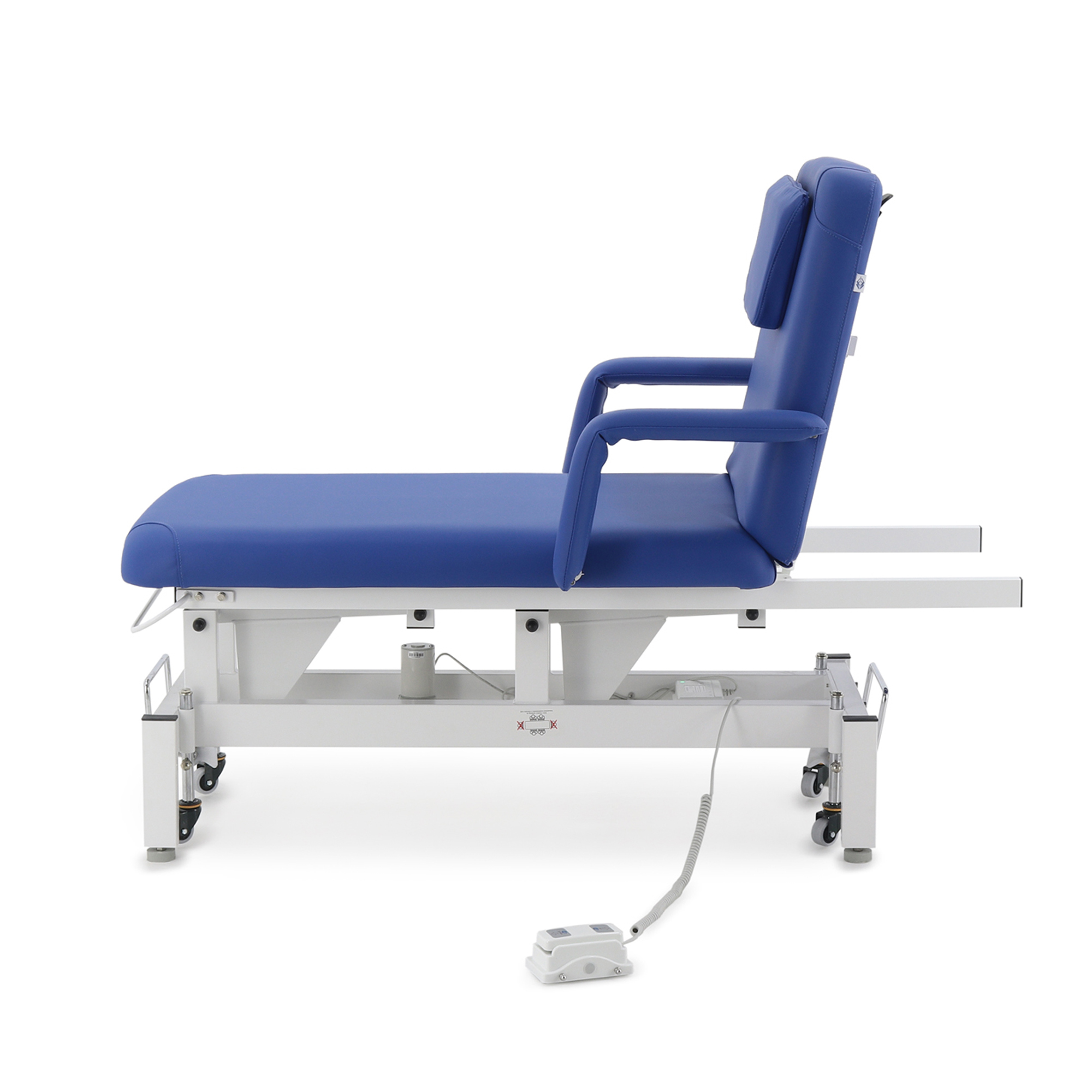 - Комфорт для клиента: Широкое ложе с толстым упругим наполнителем, удобное отверстие для лица с мягкой подушкой и съемные подлокотники обеспечивают максимальное расслабление пациента.