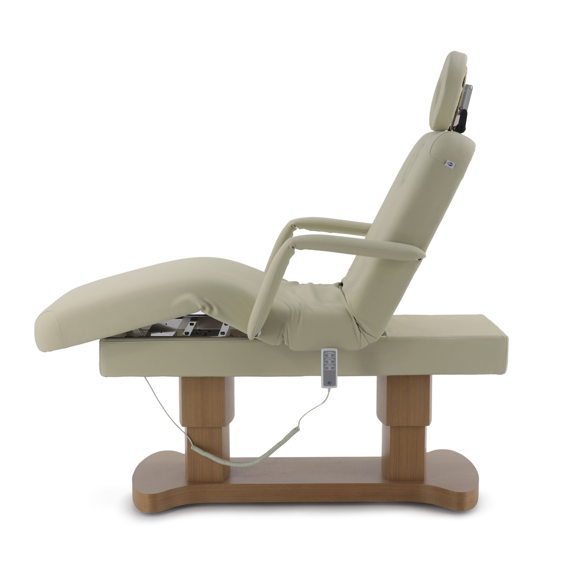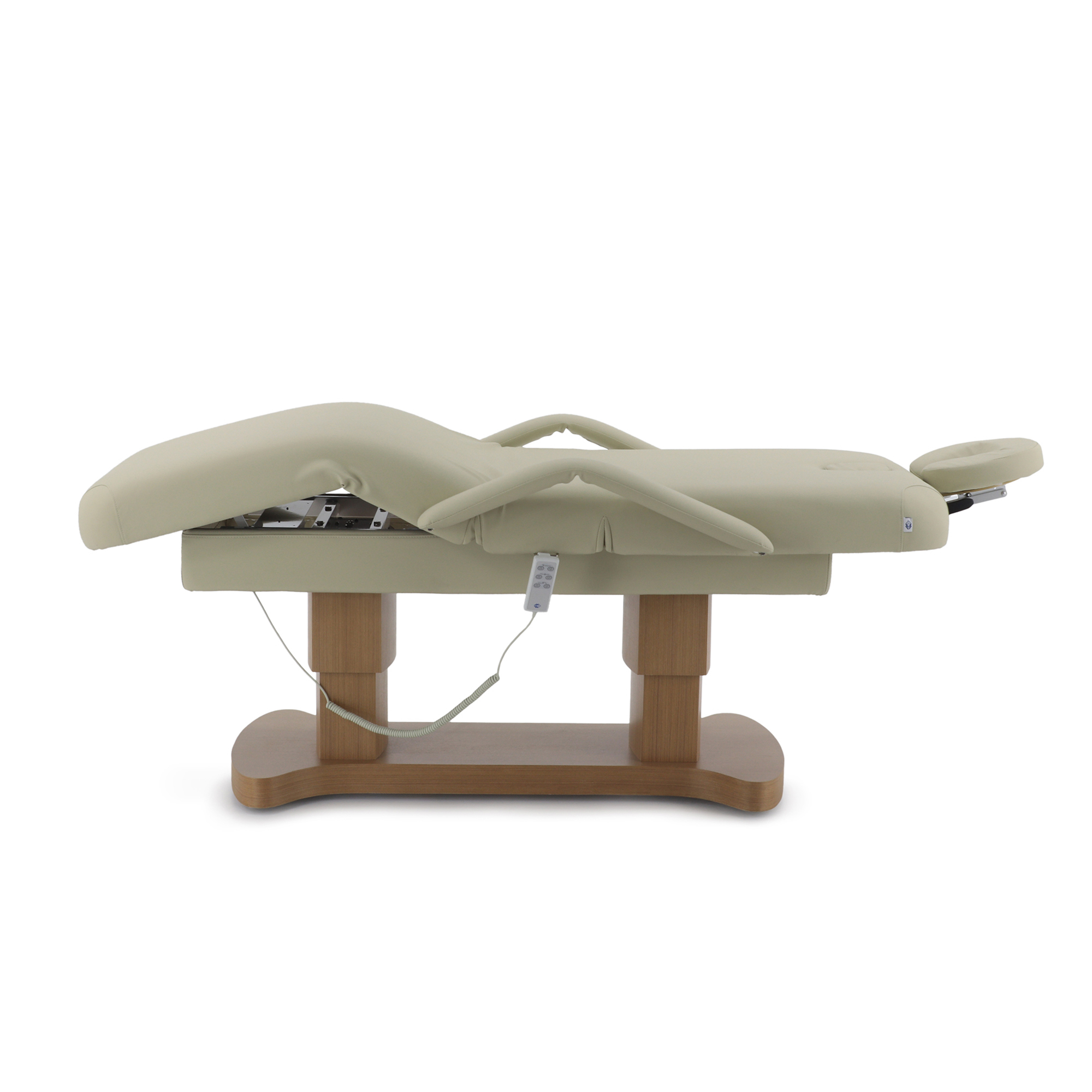- Профессиональная эргономика: три мотора и четыре функции электрической регулировки позволяют быстро и без усилий настроить стол под любого клиента и любую процедуру, минимизируя физическую нагрузку на массажиста.