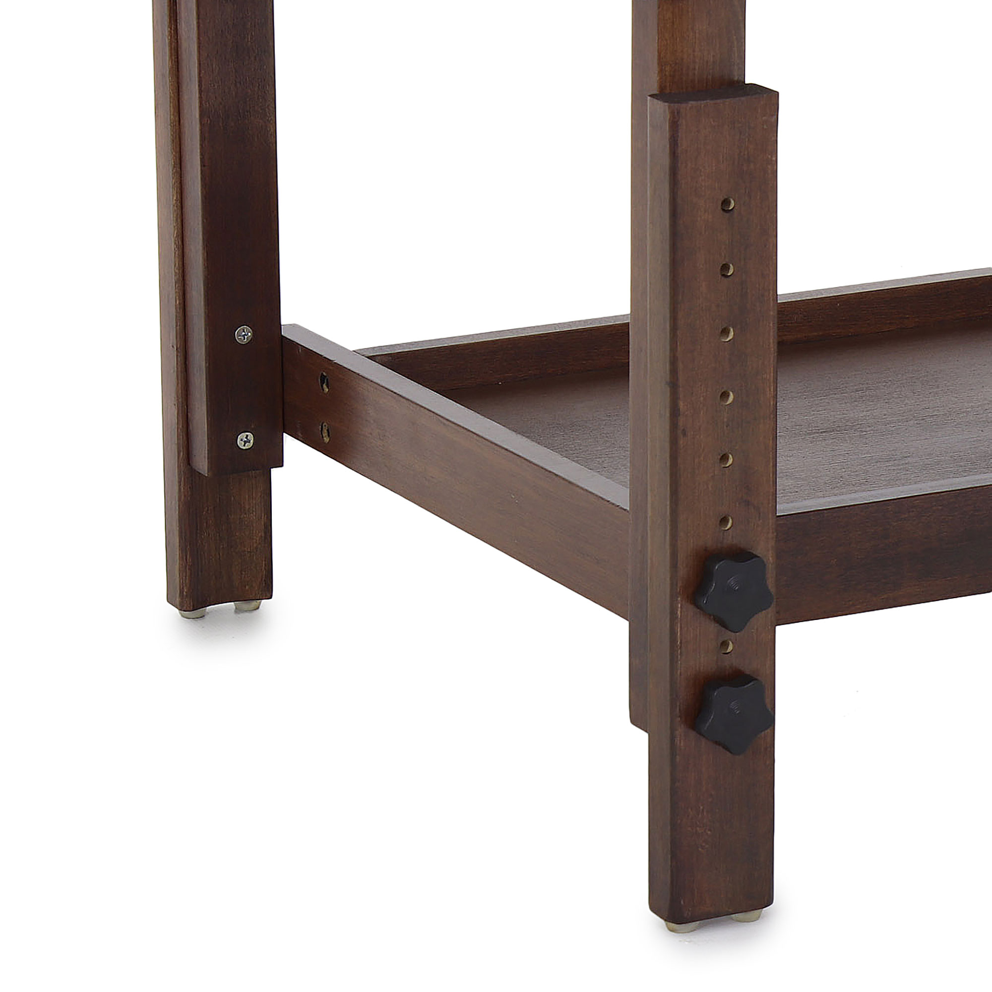 - Каркас: сборный (несущая рама, опорные ножки из массива дерева, нижняя полка из клееного шпона)